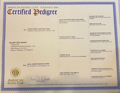Banks has been retired as our stud. He is from our Fenix and Hope 2017 litter. He is an excellent retriever and pet dog with an incredible on/off switch.